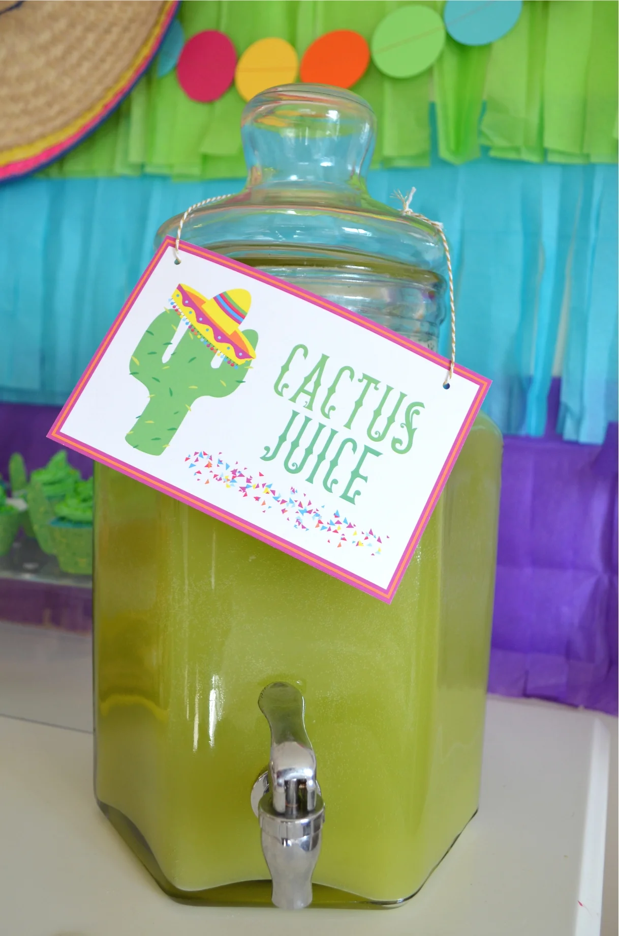 For the cactus punch, we just mixed green koolaid and sprite, but you can always add some lime sherbet for more fun!