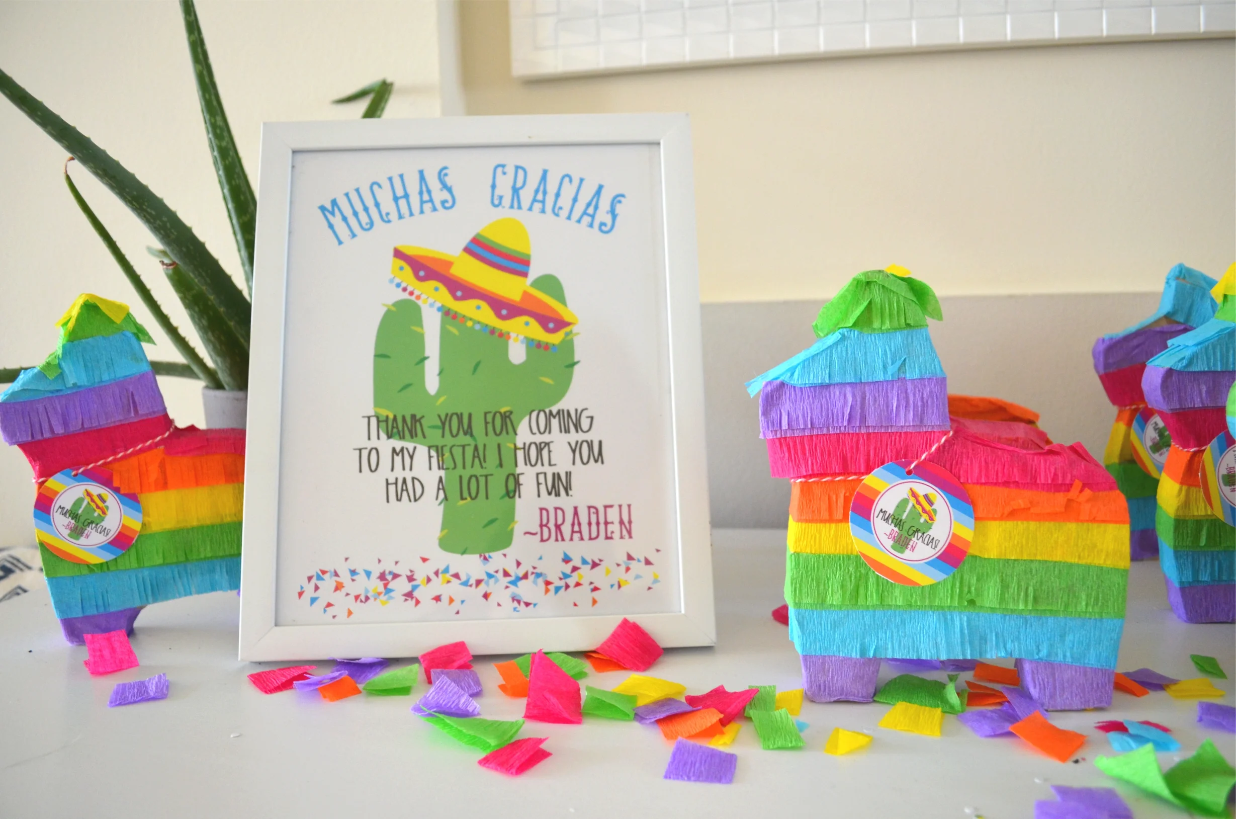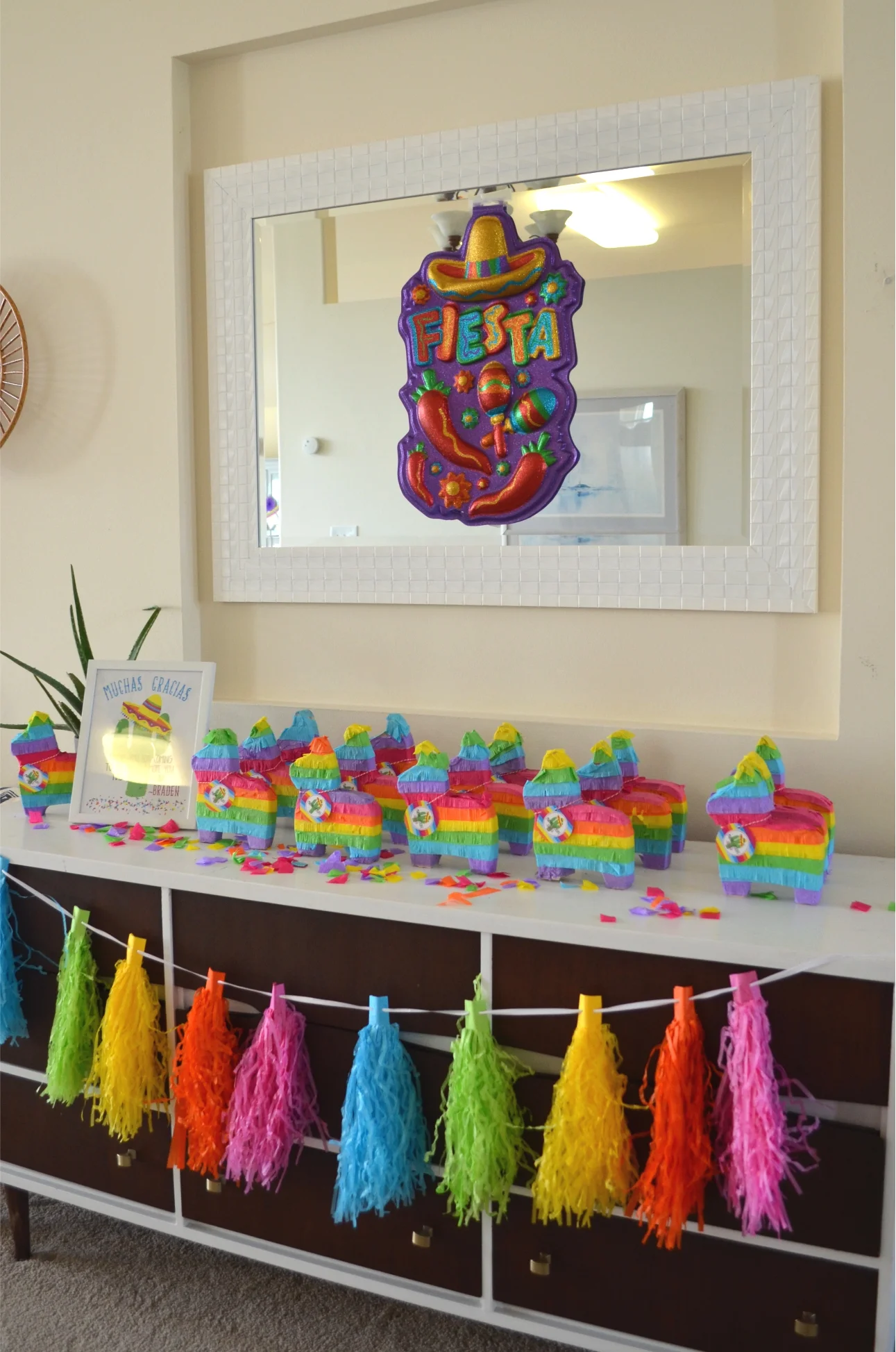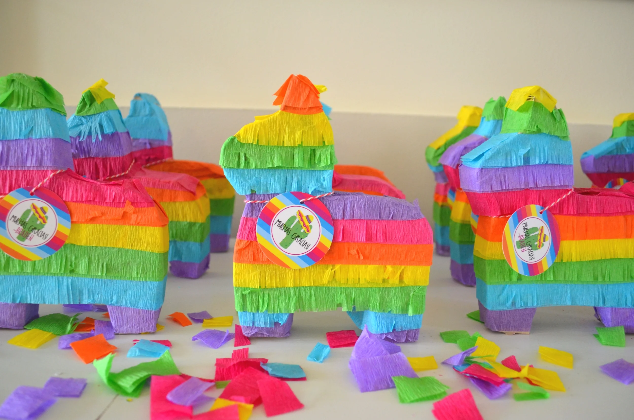 We made our own little pinatas, but you can easily find some on Etsy. Although a little time consuming to make this many, it ended up being a fun family activity.