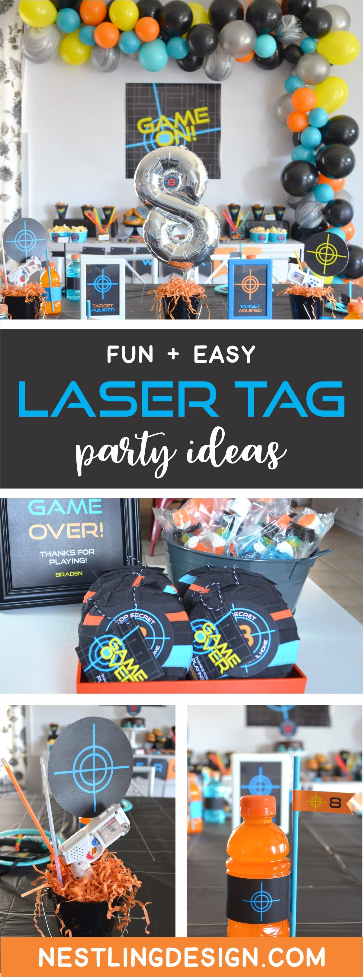 When our son decided he wanted to have a laser tag party, I instantly envisioned having a square invitation with the graphic we used on the back. Since we would be taking the boys to the event and then bringing them back to our house for a sleepover, I knew having a small insert (our 'game plan') for those details would be important as well.